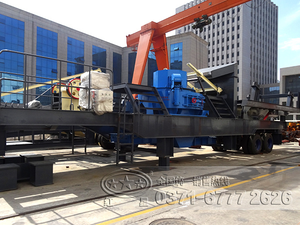 移动制砂机别称轮胎式移动制砂机,也叫车载移动制砂机,因为是车载迁移,随车随走随用,在场地狭窄、复杂区域同样身手敏捷,自由穿行各场地,原料不需要运输,直接深入生产现场,能屈能伸,不需要再进行复杂安装作业,只需把各个部分伸展出来便可以作业。