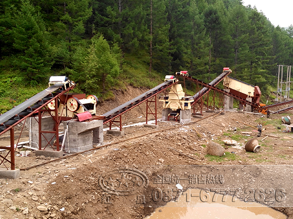 除外,根据不同用户情况和要求,还可以配置3020洗砂机、PF-1214反击式破碎机等,因为是三层振动筛,可以生产0-5mm、5-10mm、10-20mm等不同鹅卵石成品粒度。
